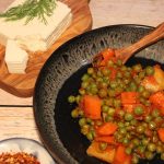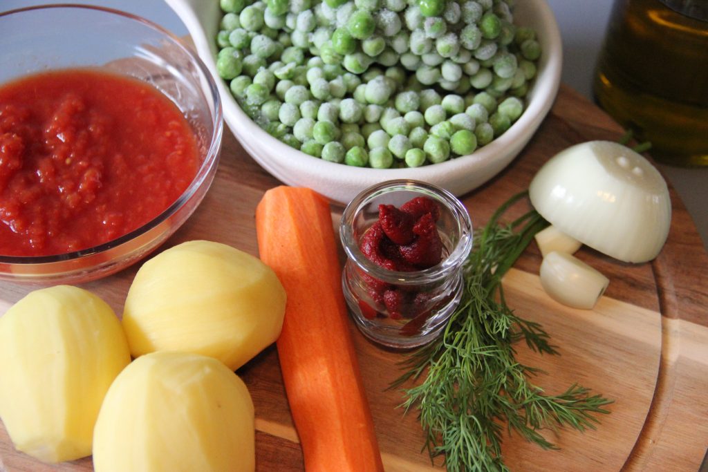 Auf den ersten Blick klingt es nicht spannend, doch es ist ein sehr leckeres und einfach zubereitetes Gericht und ein Klassiker in der griechischen Küche. Das leuchtende grün der Erbsen, das strahlende orange der Möhren und die sonnigen gelben Kartoffeln in einer roten Tomatensoße mit Olivenöl sehen zusammen perfekt aus.