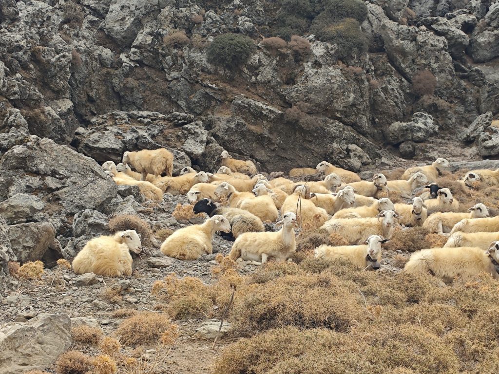 Bereits kurz nach unserem Halt treffen wir am Morgen die erste Schafherde auf der Straße. Im Laufe des Tages werden uns noch unzählige Schafe und Ziegen begegnen.