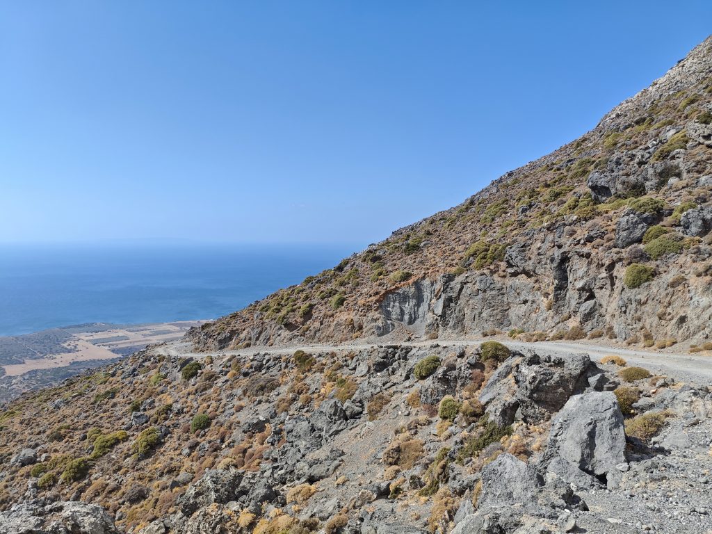 Nun verlassen wir die Nordküste Kretas und kurz darauf erhaschen wir unseren ersten Blick auf die Südküste. Es ist immer wieder beeindruckend, nach der Fahrt durch das Gebirge den ersten Blick auf die Südküste zu haben.