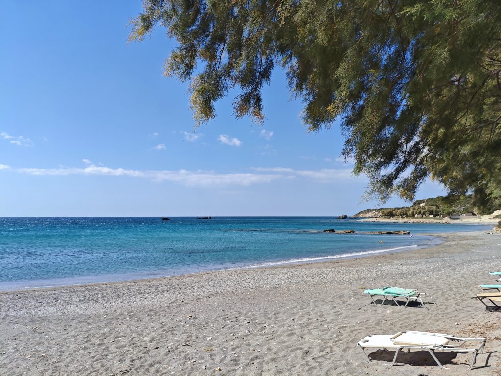 Der Strand erstreckt sich entlang der gesamten Länge des Dorfes und besteht zum größten Teil aus feinem Sand. Er beginnt bereits auf der linken Seite des Flusses Almiros und geht dann nahtlos in den Strand von Kavros über. Der Strand ist durch einige Strandbars sehr gut organisiert, von Strandliegen bis hin zu guter Bewirtung findet man hier alles.