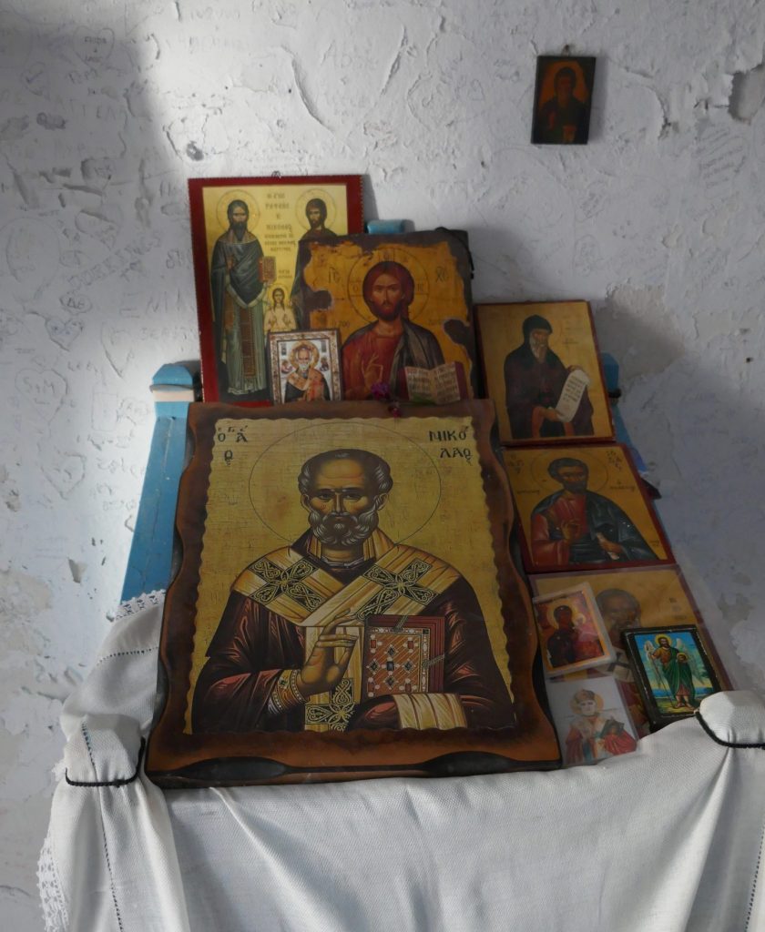 Oberhalb des Flusses ist die kleine Höhlenkapelle Ágias Dinamis zu finden. Die Kapelle selbst ist recht klein und einfach gestaltet, doch die Atmosphäre macht sie besonders.