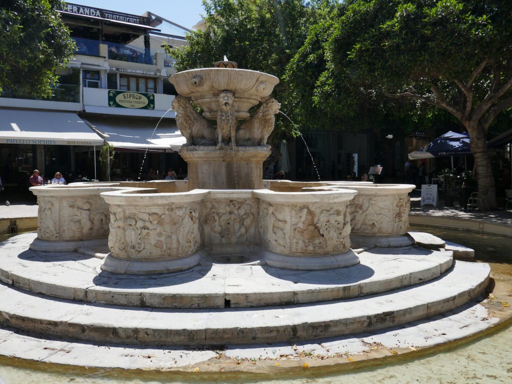 Unser Rundgang führt uns jetzt zum Morosini-Brunnen, der sich im Herzen der Stadt befindet. Der Brunnen wurde im 17. Jahrhundert erbaut und ist nach dem damaligen Statthalter Francesco Morosini benannt. Der Brunnen diente als Endstück eines 15 km langen Aquädukts, welches die Stadt von Wasserknappheit schützte.