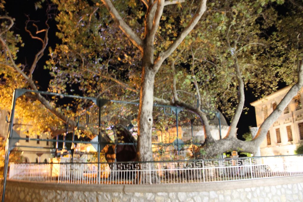 Direkt gegenüber dem Eingang des Kastells finden wir die Platane des Hippokrates. Der Legende nach soll Hippokrates unter dieser Platane gelehrt haben. Es wird gesagt, dass er seine Schüler hier versammelte, um ihnen medizinisches Wissen zu vermitteln.