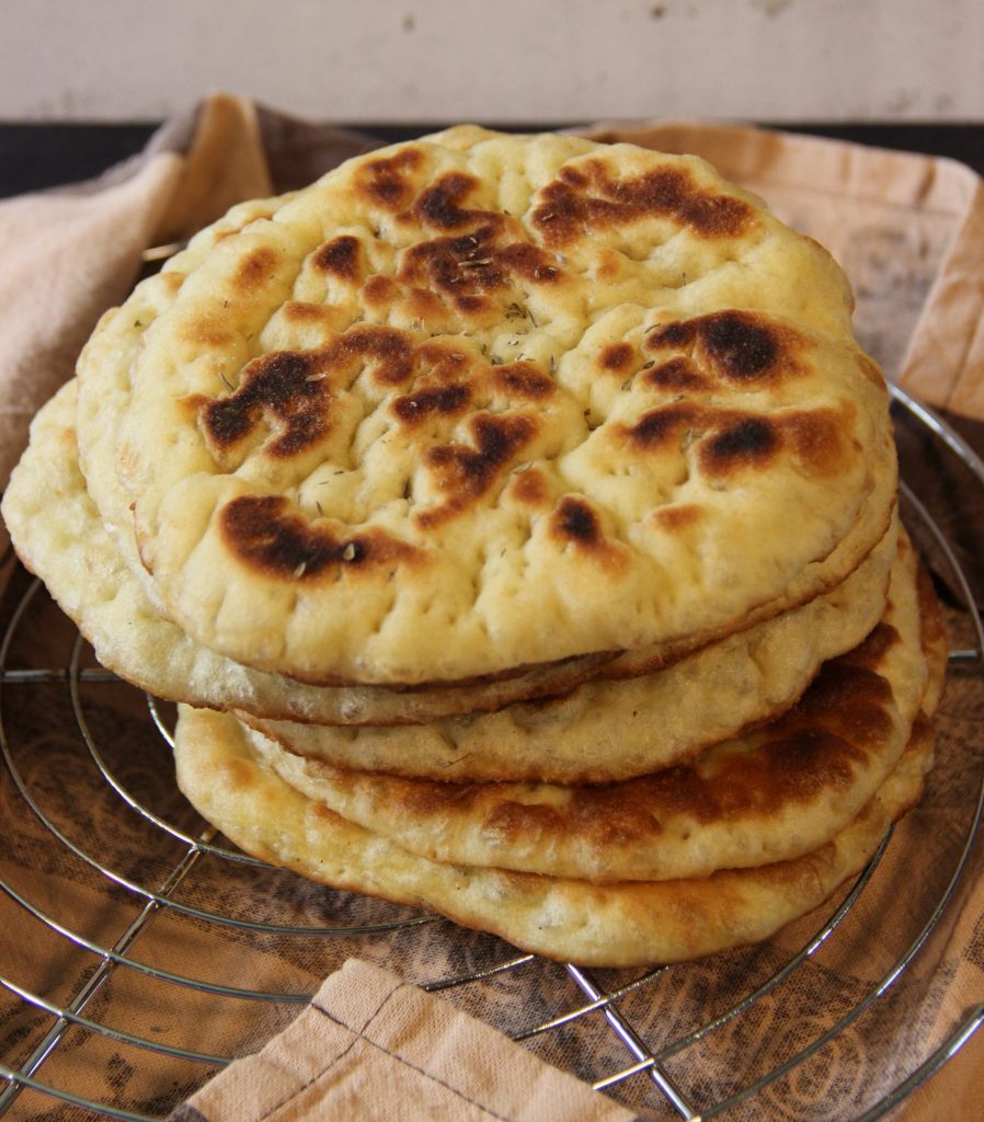- Die Pita wird auf einem Rost gestapelt und mit einem Handtuch abgedeckt, so bleibt sie warm und fluffig.