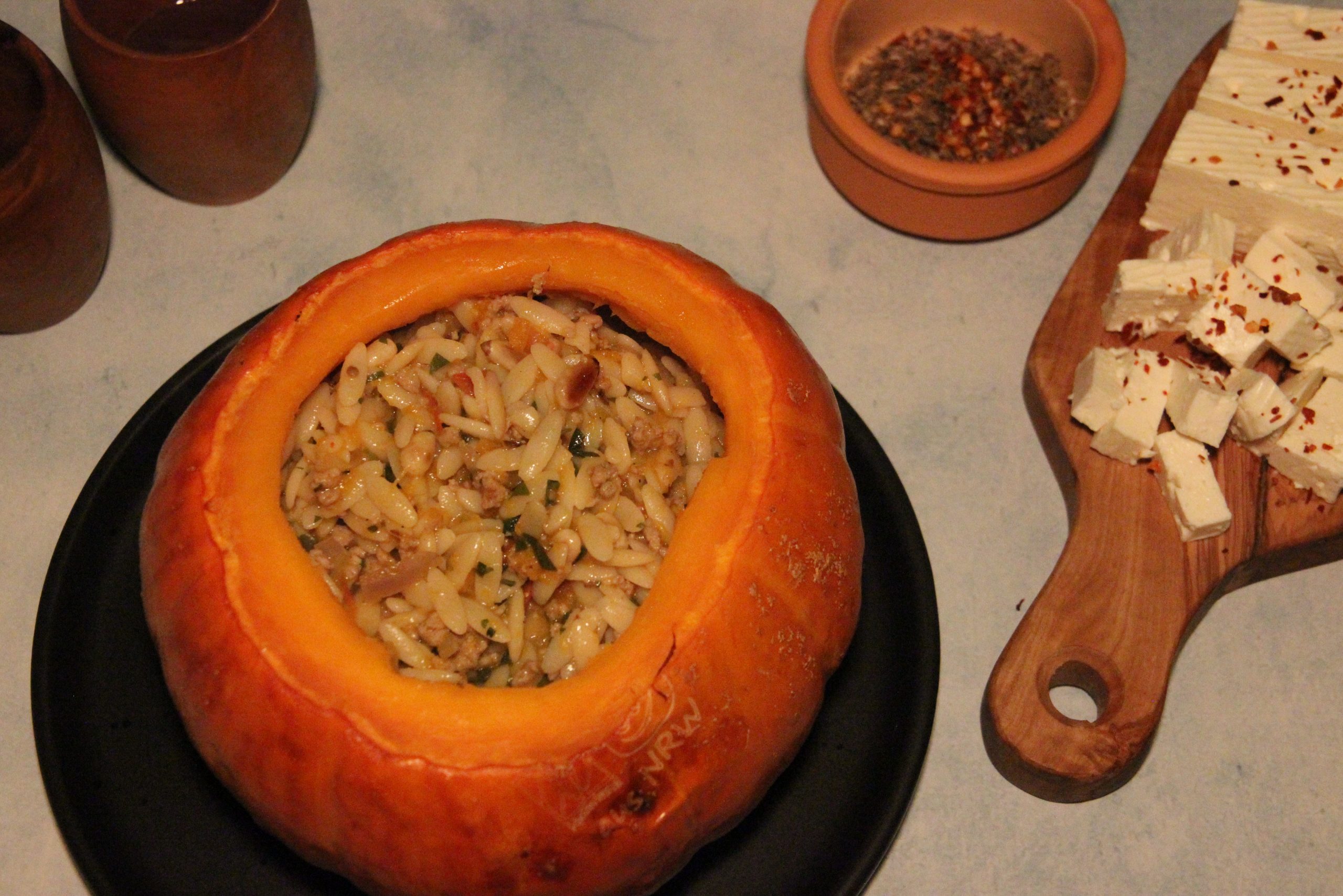Kolokytha gemisti – Kürbis gefüllt mit Kritharaki und Hackfleisch