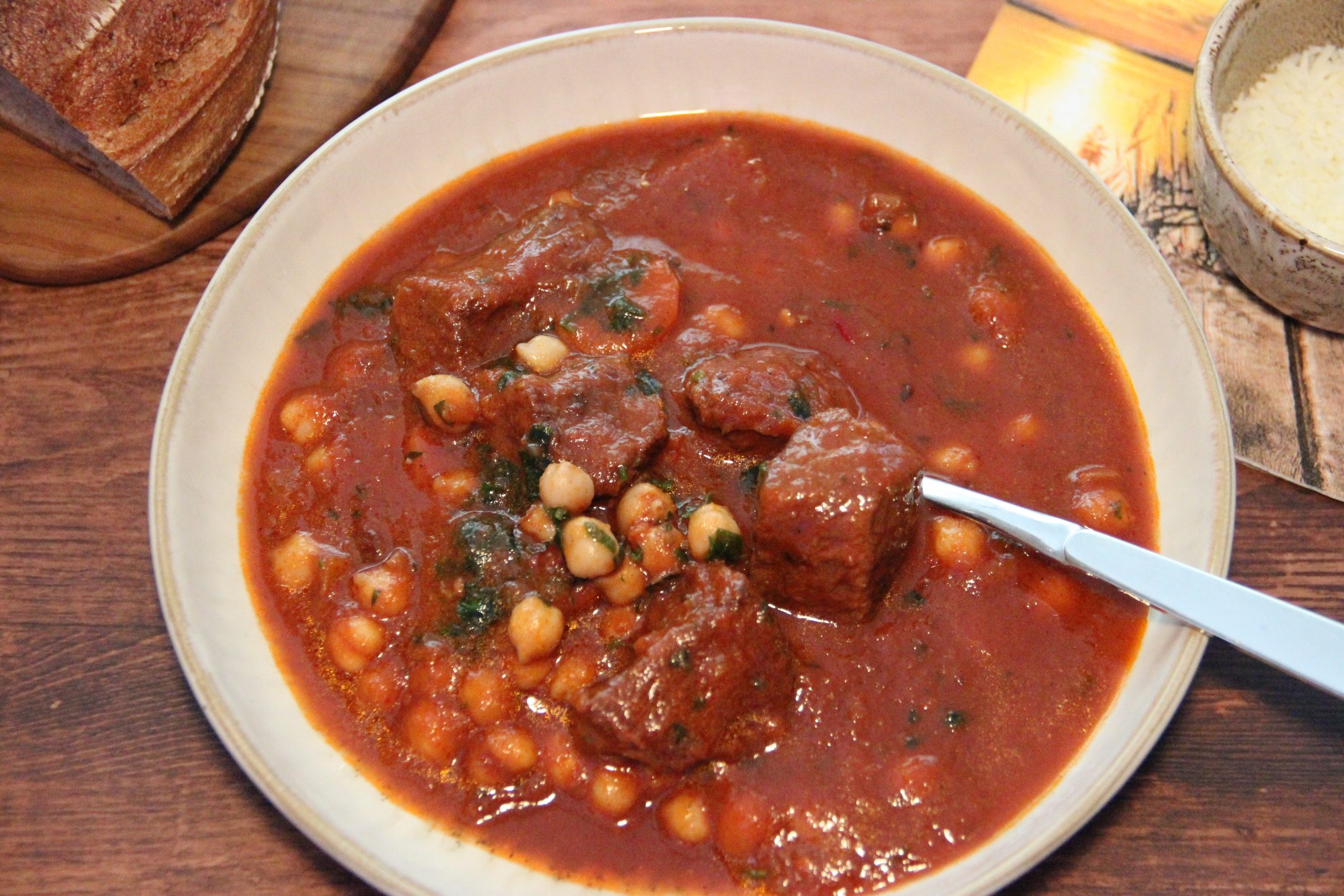Kokkinisto me revithia – Fleisch in Tomatensoße mit Kichererbsen