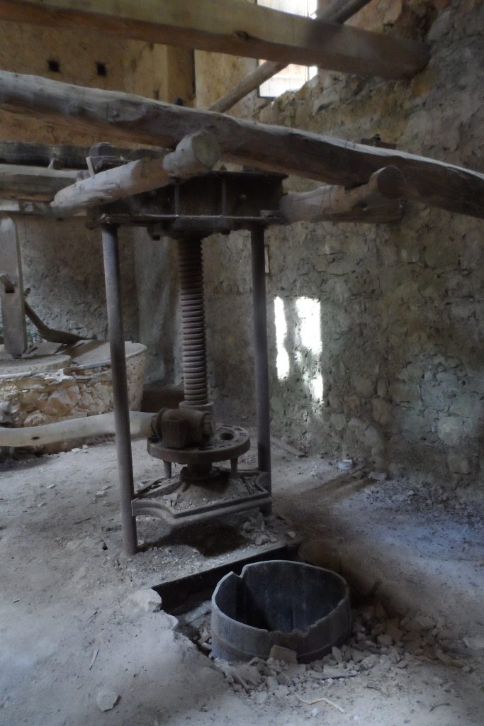 Im Untergeschoss ist eine alte Ölpresse erhalten, die einen Einblick in die verschiedenen Phasen der Olivenölproduktion bietet, einschließlich der Becken, in denen die Oliven gewaschen wurden, und der eisernen Presse, die das Öl aus den Oliven presste.