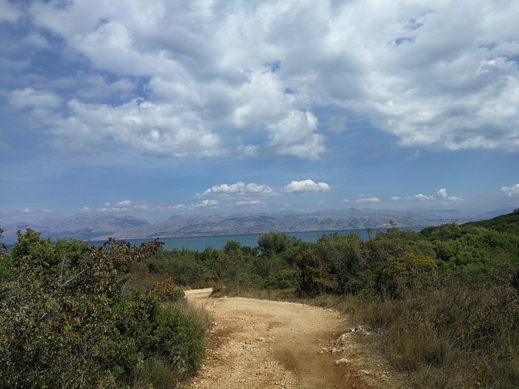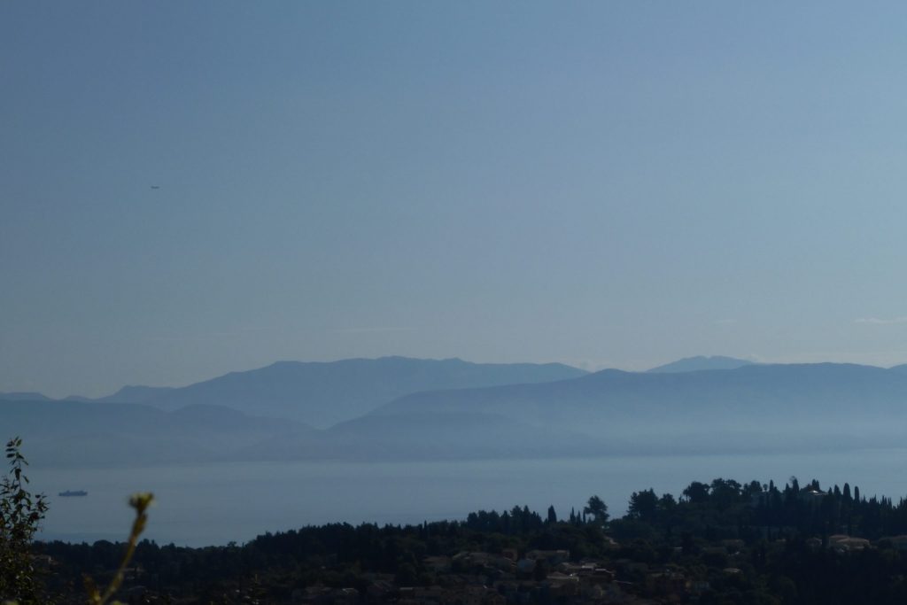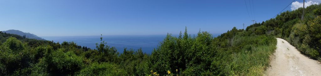 Es ist vollbracht, die Insel ist überquert, man schaut nun auf die Küste der westlichen Seite von Korfu – es fühlt sich an wie ein Meilenstein.