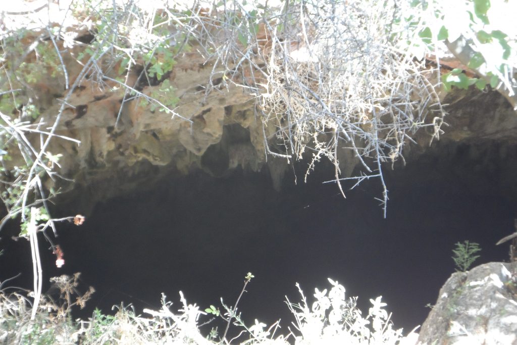 Kurz nach dem Start der Tour erreicht man einen Platz mit Tischen und Bänken, hier geht es hinab in die Höhle Megali Grava, ein beeindruckendes Naturphänomen.