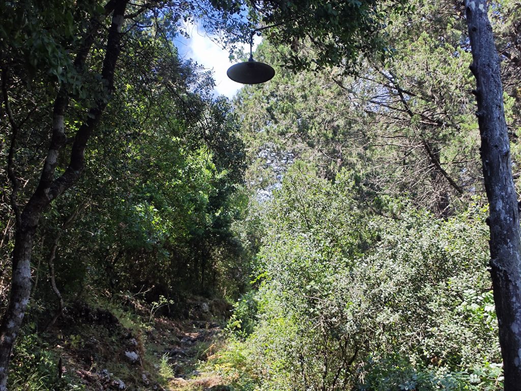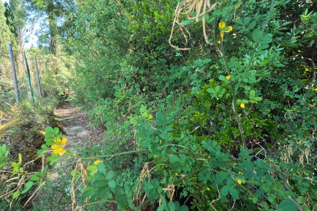 Leider beginnt hier unser nicht mehr aktueller Pfad. Dennoch ist die Umgebung wunderschön, mit kleinen Trampelpfaden, die manchmal kaum zu erkennen sind, bis wir vor einem abgesperrten Bereich stehen, der sicherlich ebenso schön gewesen wäre. Über eine schmale Straße kehren wir zum Brunnen von Sissi zurück und suchen von dort aus einen neuen Weg. Dieser führt uns über eine Treppe auf einen sehr schmalen Pfad, der an einem Privatgelände vorbeiführt, bis wir wieder auf einen größeren Weg stoßen.